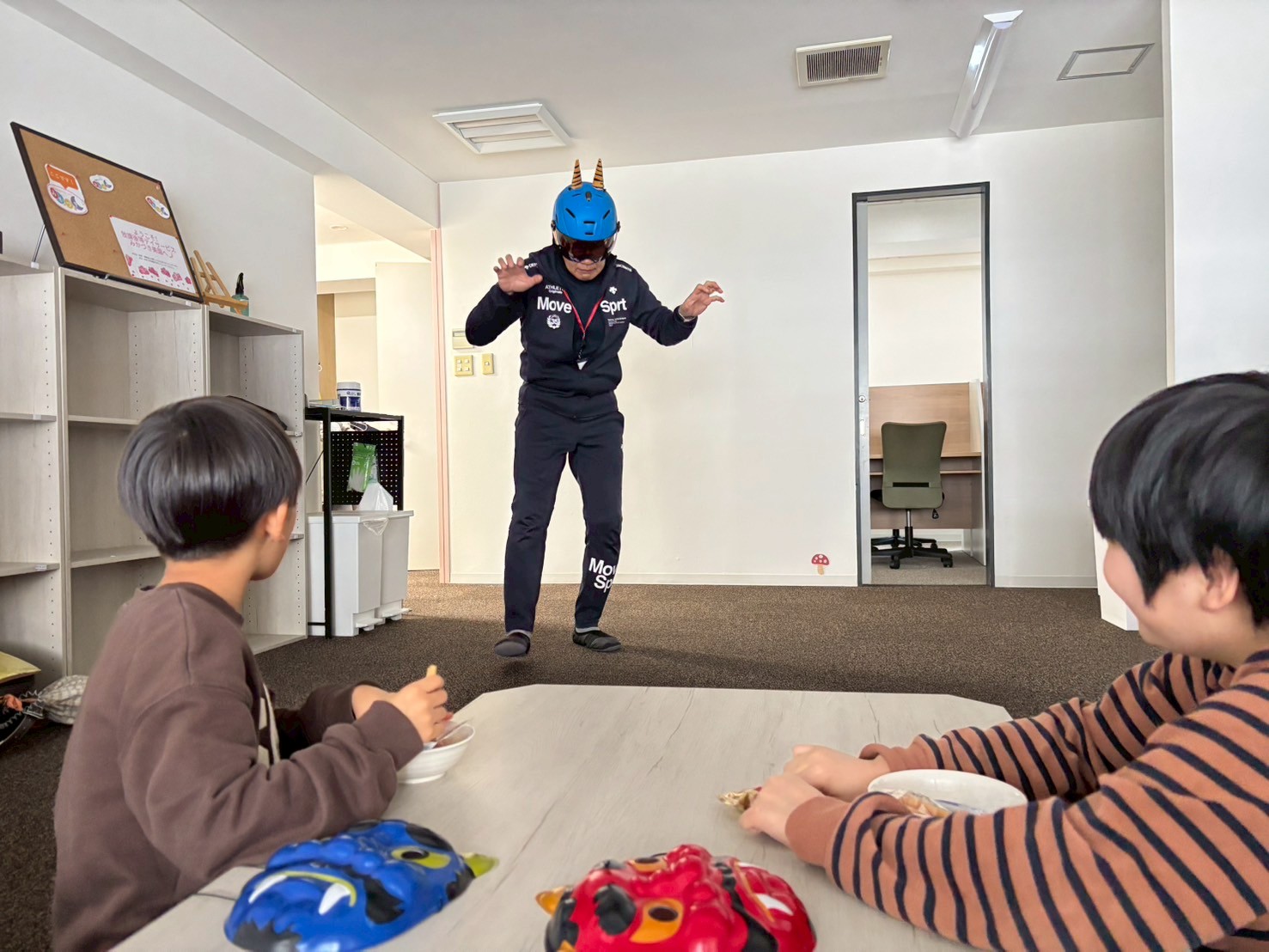 ちなみに今年の節分、みかづき美園では一足先におやつの時間にヘルメットを被った鬼が現れました😲