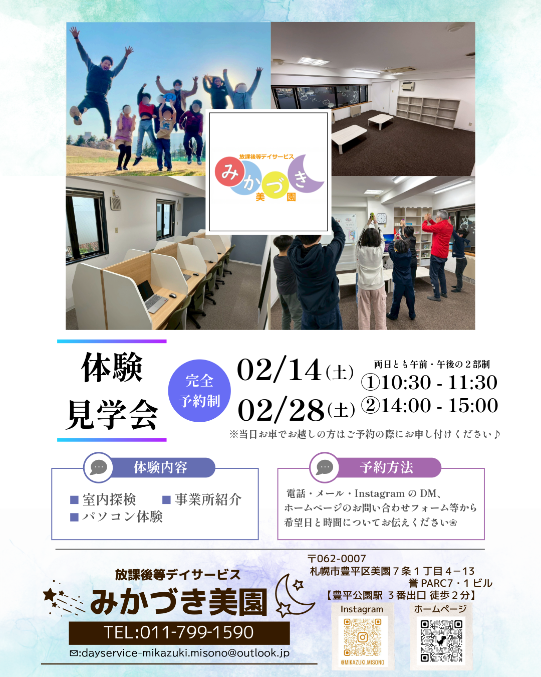 なんと!2月は2月14日(土)、2月28日(土)の2回体験・見学会を行います♪