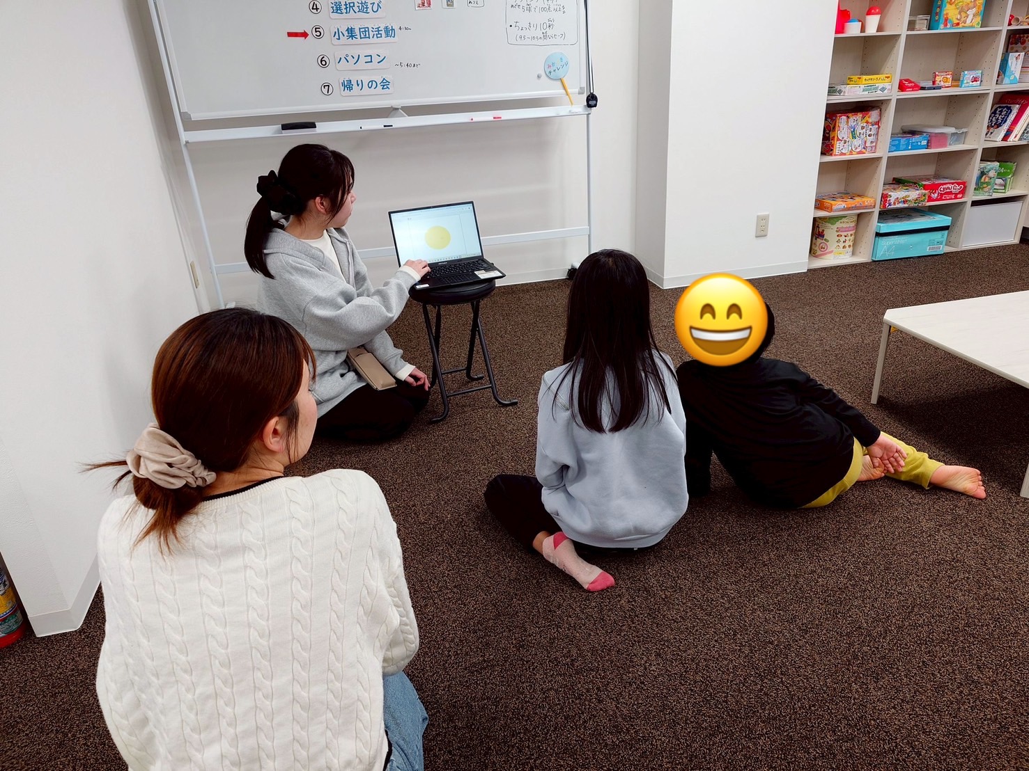 今回は、通い始めたばかりの子どもたちが室内や物の配置に慣れていけるように、という思いも込めて活動を行いました。楽しみながら空間を知り、約束を守ること、そして人前で伝える経験にもつながる活動となりました!