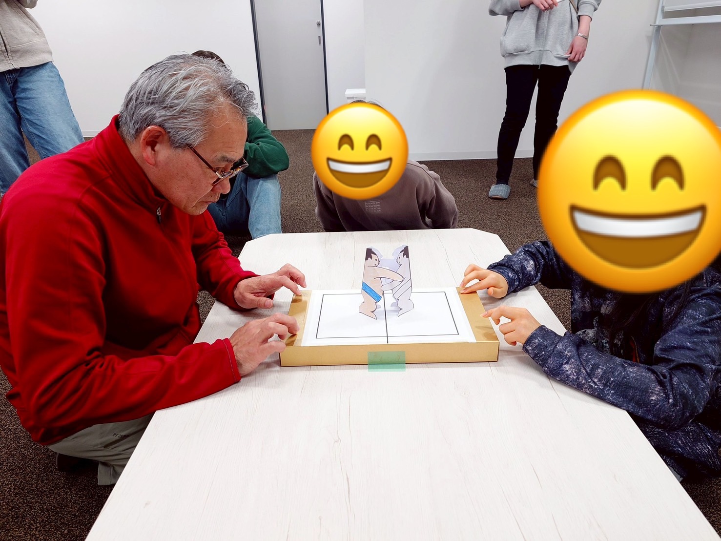 お相撲さんが完成したら、土俵の上に立たせて対戦です。