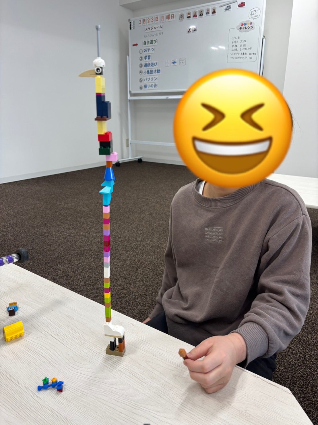 長くなっていくと倒れてしまうので、バランスをみながら組み立てていました☆