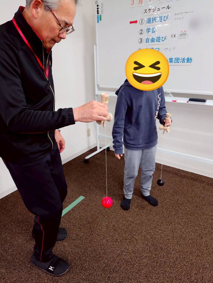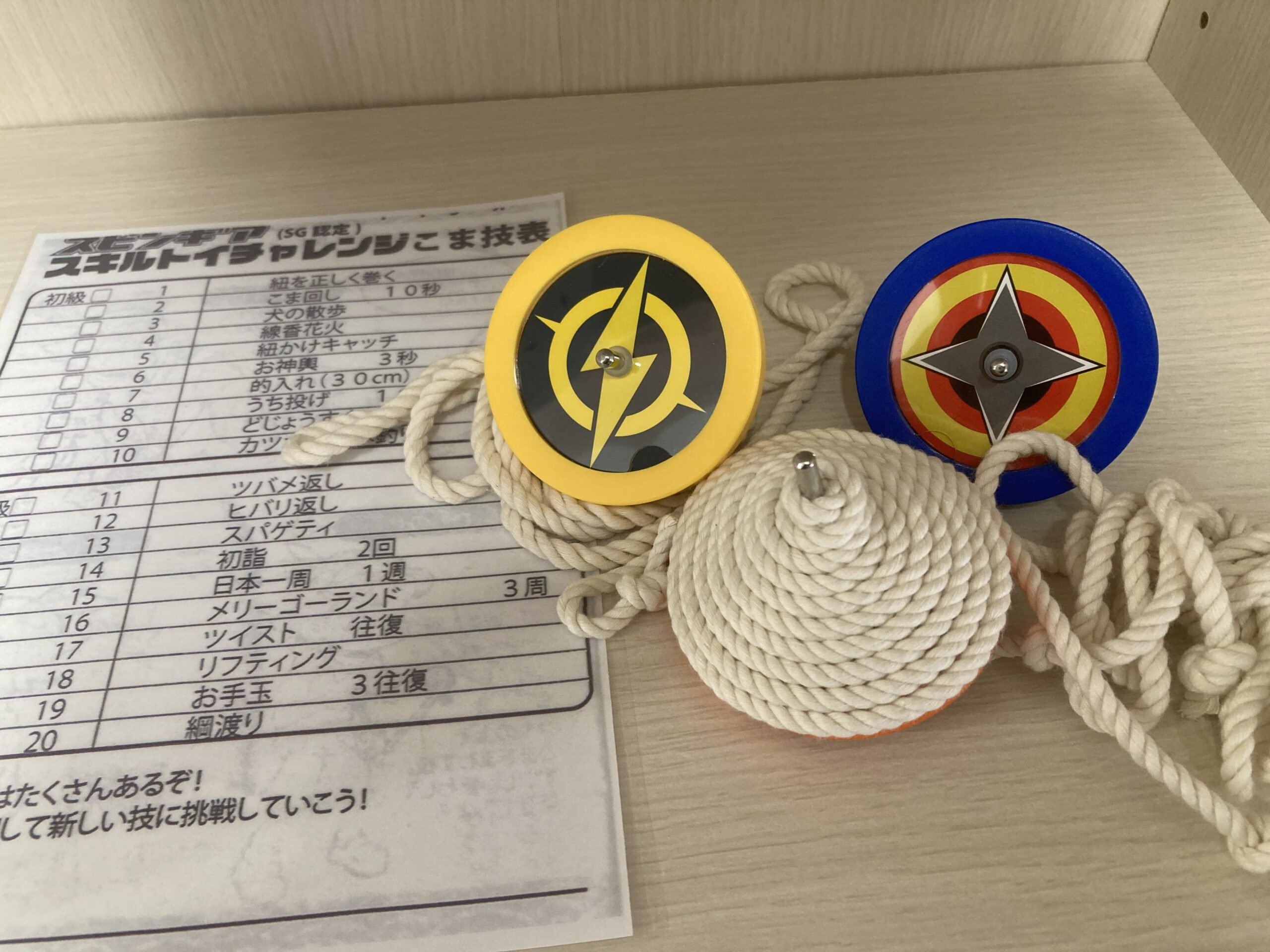 みかづき美園では「昔遊び」として、コマ回しとけん玉を取り入れています☆