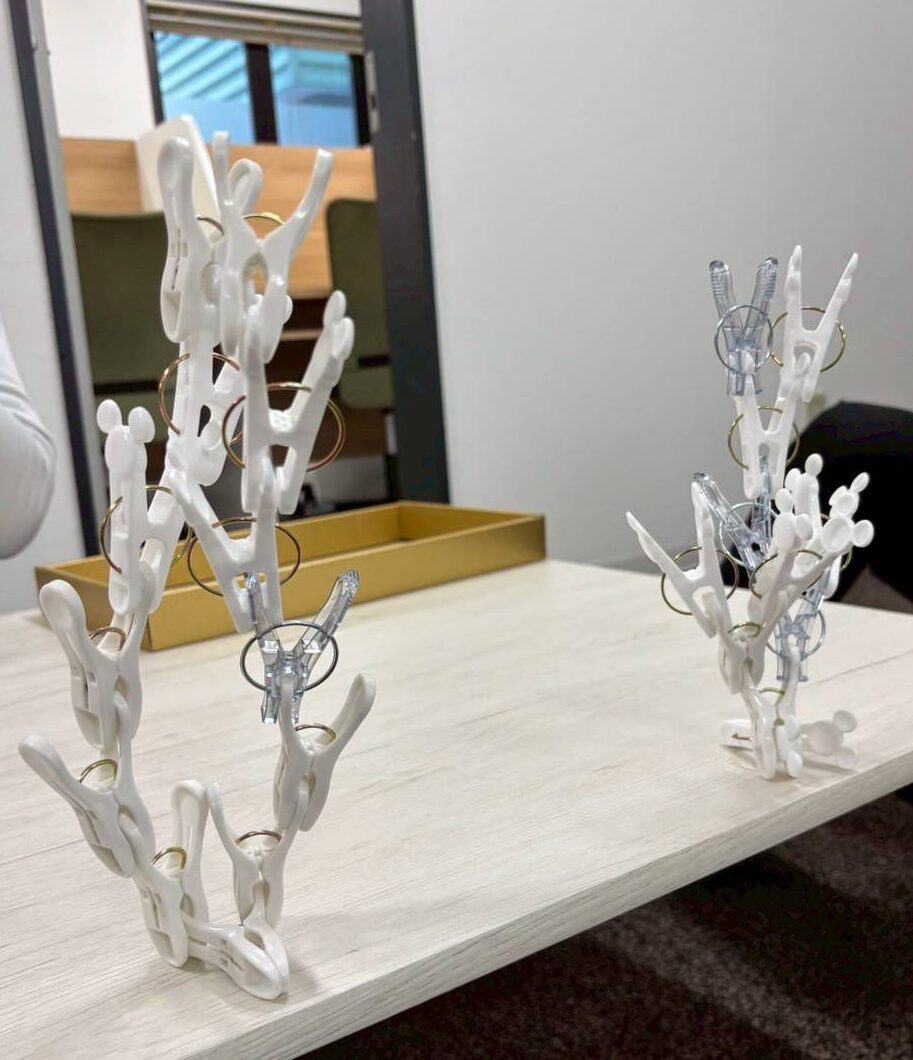 さらには、こんな不思議な形の洗濯バサミのタワーもみんなで作ってみました。