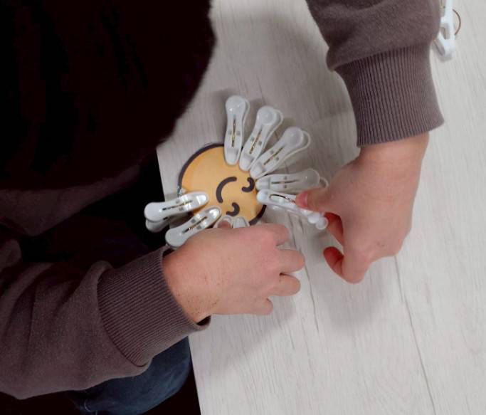 洗濯バサミを用いた活動は「つまんで挟む」という単純な動作で、指先の力や手先を扱う力を養い、日常生活の自立を促すのに有効と言われています。