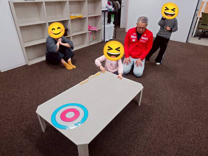 「どのくらいの力で滑らせようか」「ここに置いたら相手が押してくれるかもしれないから手前に置こう」と真剣に考える姿がとても素敵でした☺