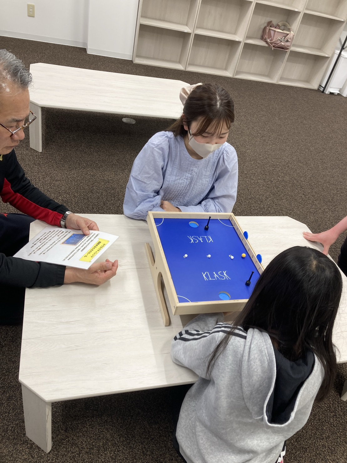 この日登園していたお子さんはクラスク初挑戦とのことで、最初は恐る恐るといった様子でした。スタッフ相手になかなかポイントを取れず負けてしまうことの方が多い状況でも「やった!1ポイント取れた!」と前向きに挑戦し続けて、少しずつ上達して、最後は見事に勝利をつかんでいました!