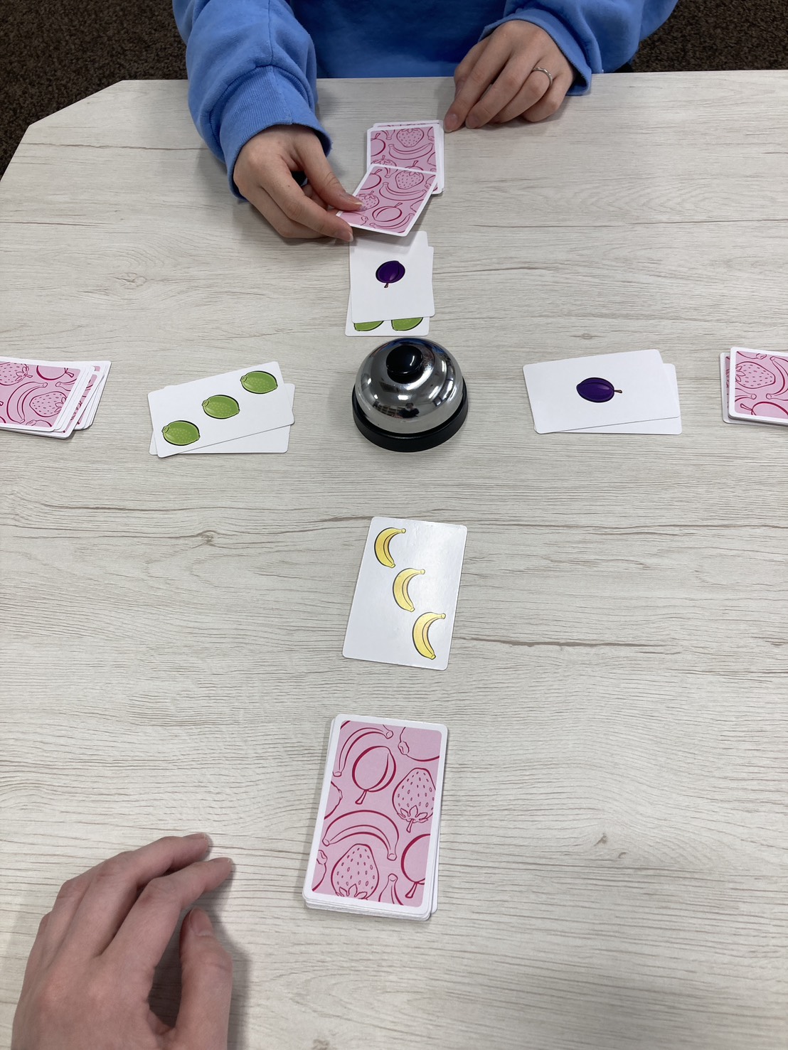 カードは全部で56枚あり、それぞれに5種類あるフルーツのどれか1種類が1~5個描かれています。あとは光り輝くベルが1つ…子どもたちも職員もついつい鳴らしたくなっちゃいます🔔